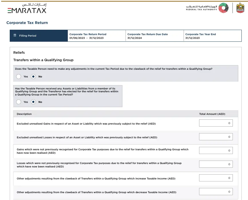 - Corporate Tax Return Due Date: The date for filing the corporate tax return is 31/12/2024.