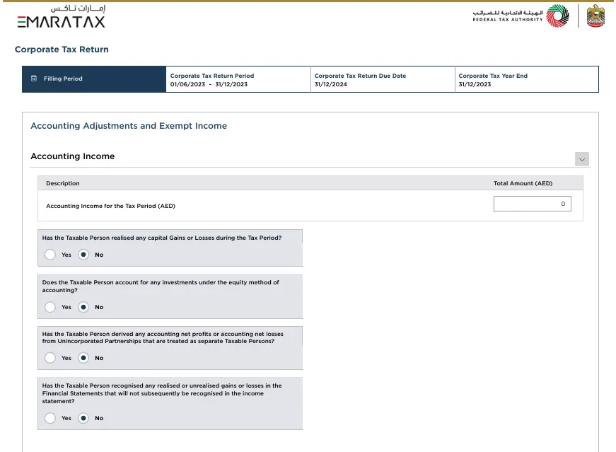 - Corporate Tax Year End: 31/12/2023