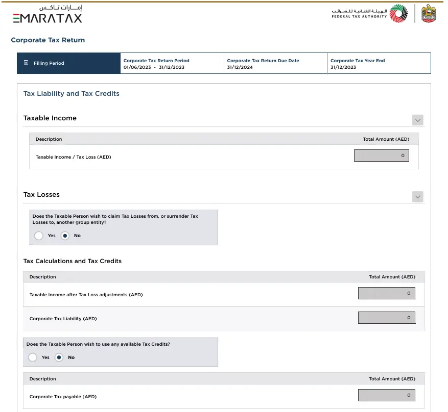 - Taxable Income / Tax Loss: [Insert Amount] AED