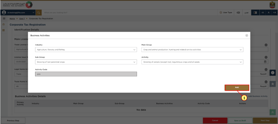 Step 8: Add all the business activities involved within the Trade License by clicking "Business Activity".