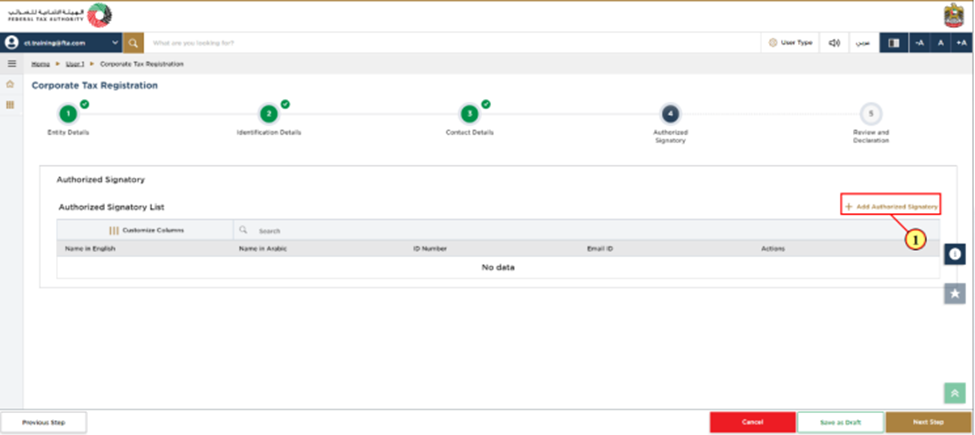 Step 14: Click on "Next Step" once you have entered all the required details to proceed to the "Authorized Signatory" section.