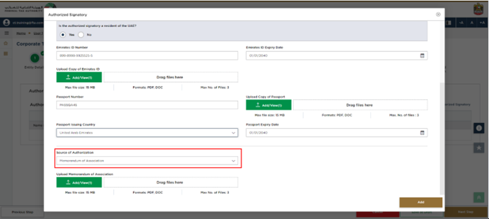 Step 16: Once the authorized details have been entered, select "Add".